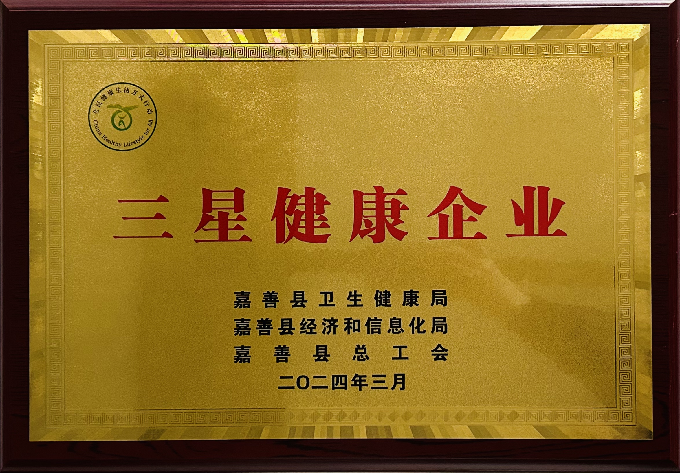 熱烈祝賀公司榮獲“嘉善縣三星健康企業”