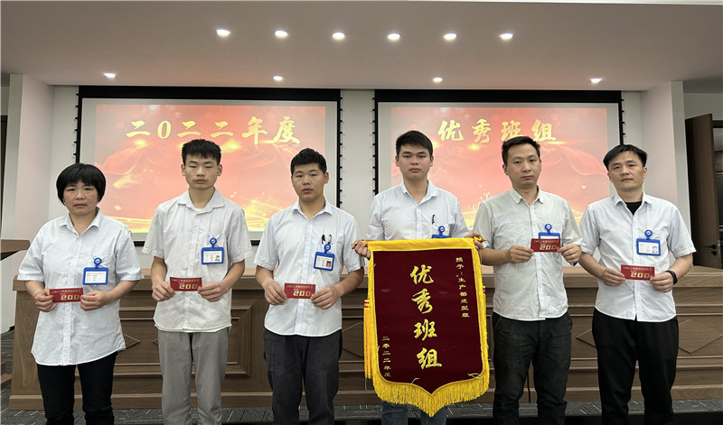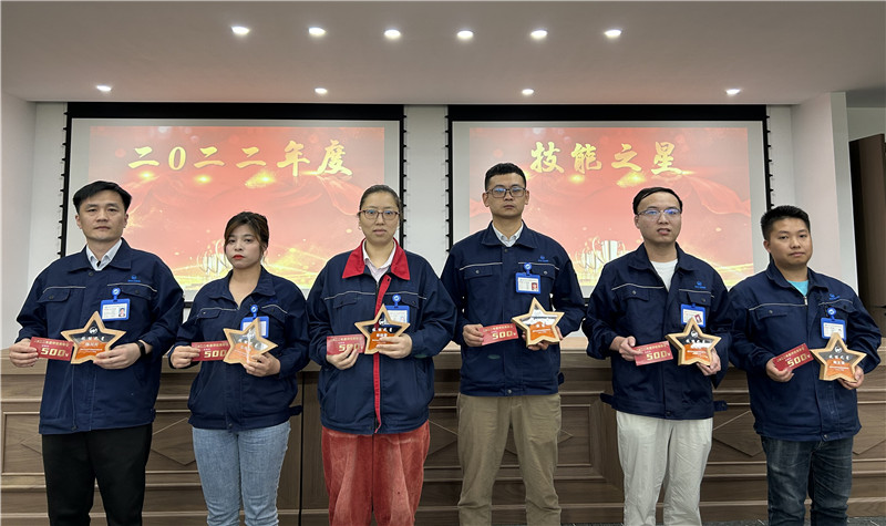 接著舉行二O二二年年度評優表彰會,表彰會上共表彰了十佳員工10名、表揚員工10名、優秀黨員2名、優秀管理干部5名、優秀班組4組、創新之星4名、內審之星1名、優秀師傅6名、保密之星1名、節約之星5名、技能之星6名、質量之星7名、安全之星6名,分別頒發獎杯、錦旗和獎金。
